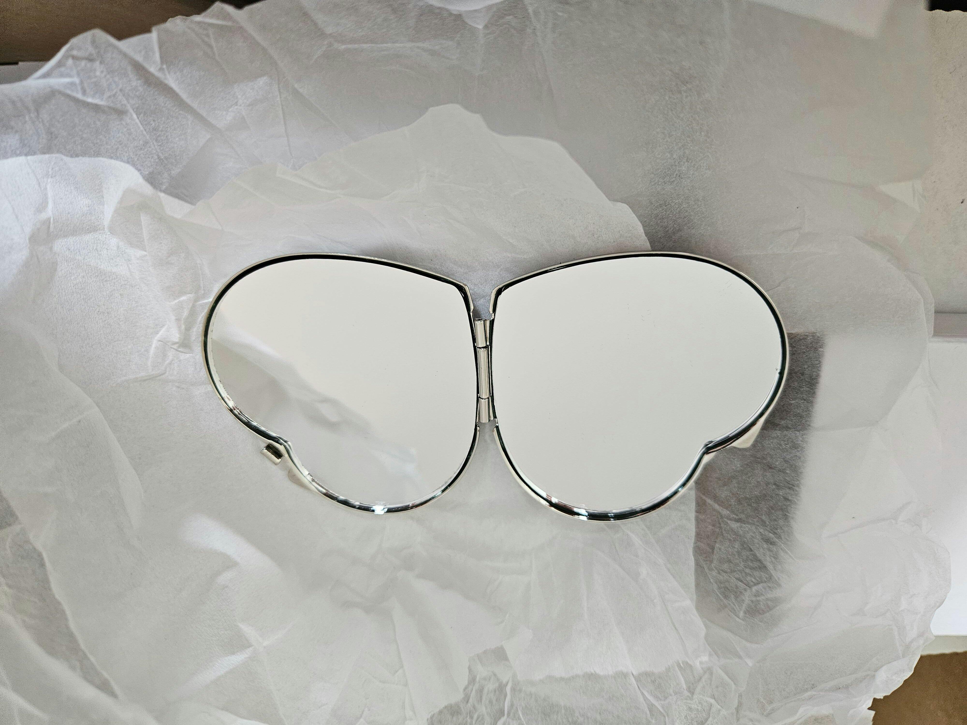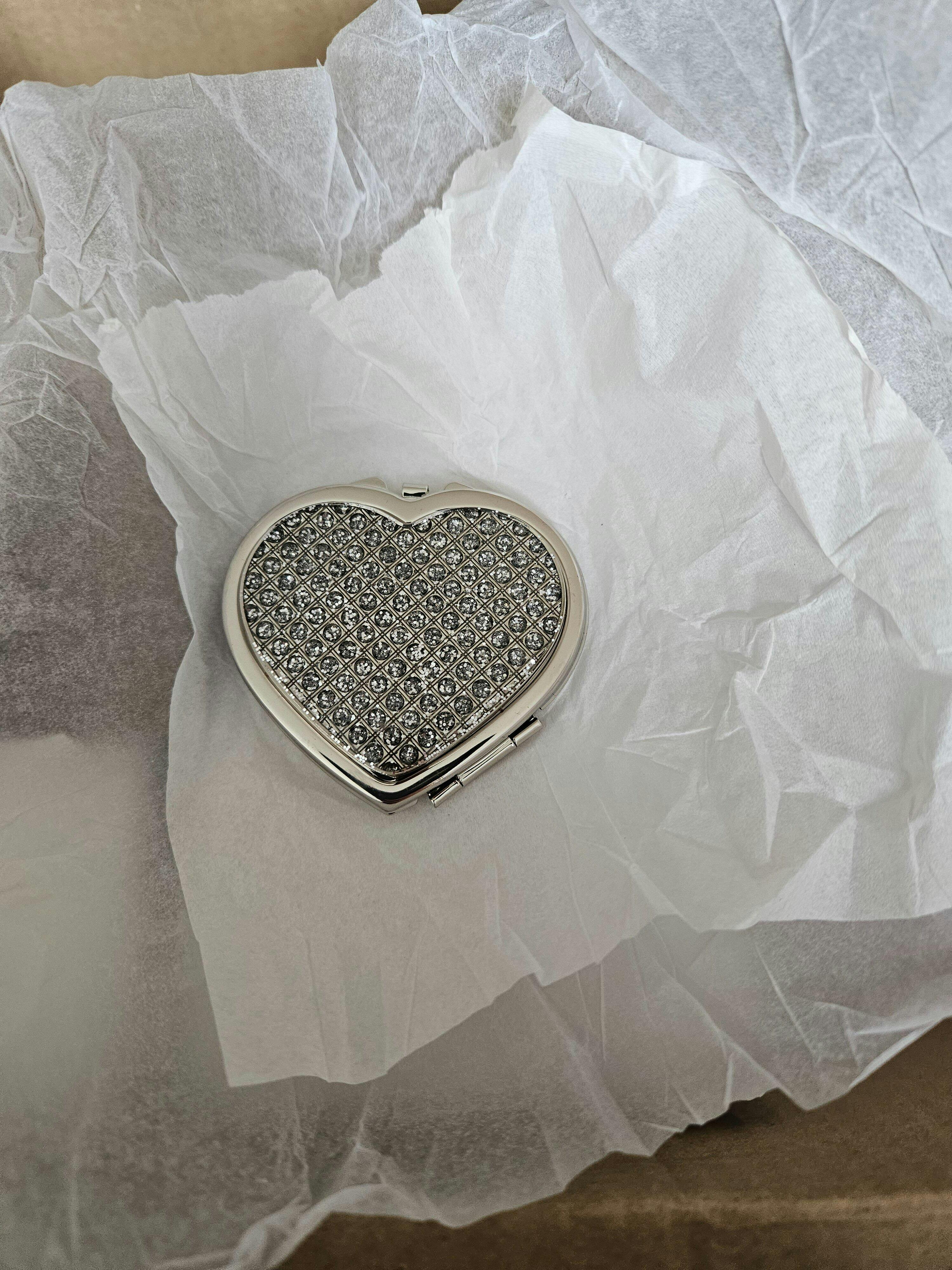 One of the external sides of this compact mirror is covered in a diamante effect.