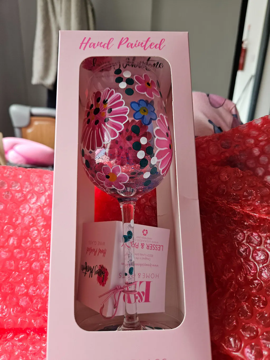 Hand Painted Wine Glasses - Pink Gerbera Design 🌺🌸