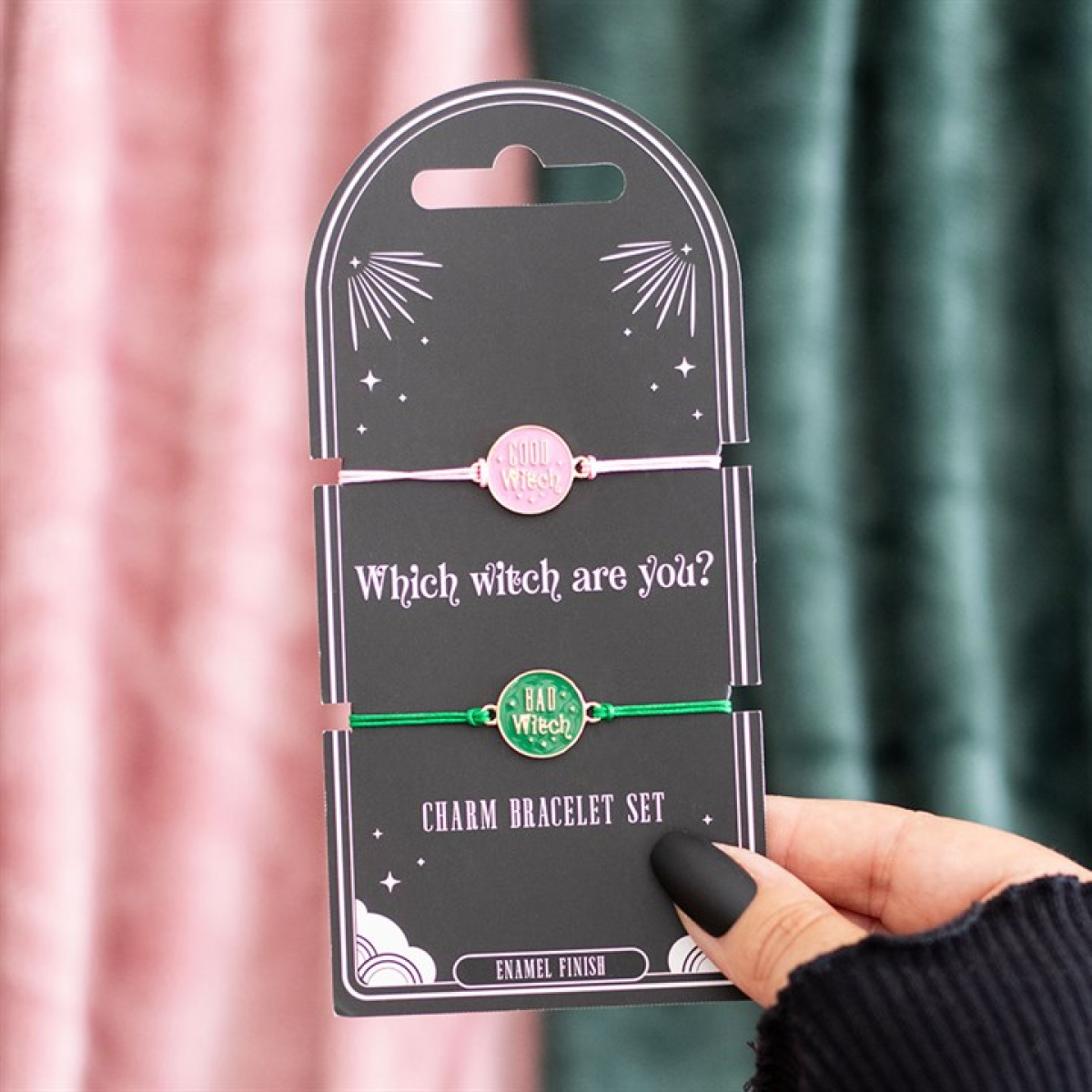 This set of two adjustable string bracelets features ‘Good Witch’ and ‘Bad Witch’ charms to suit your mood or share with your coven. Great for gifting or dual-personality days.